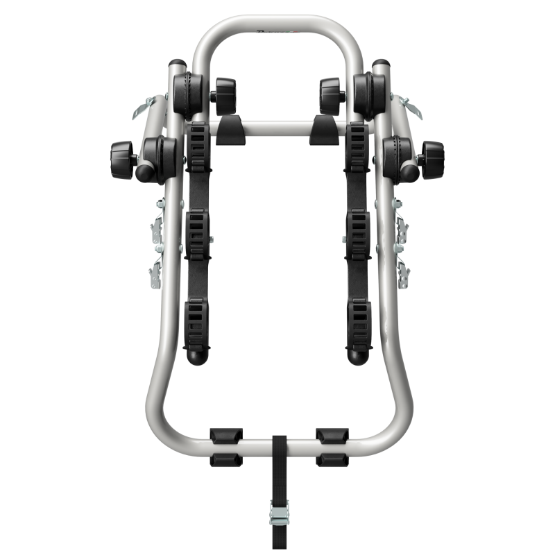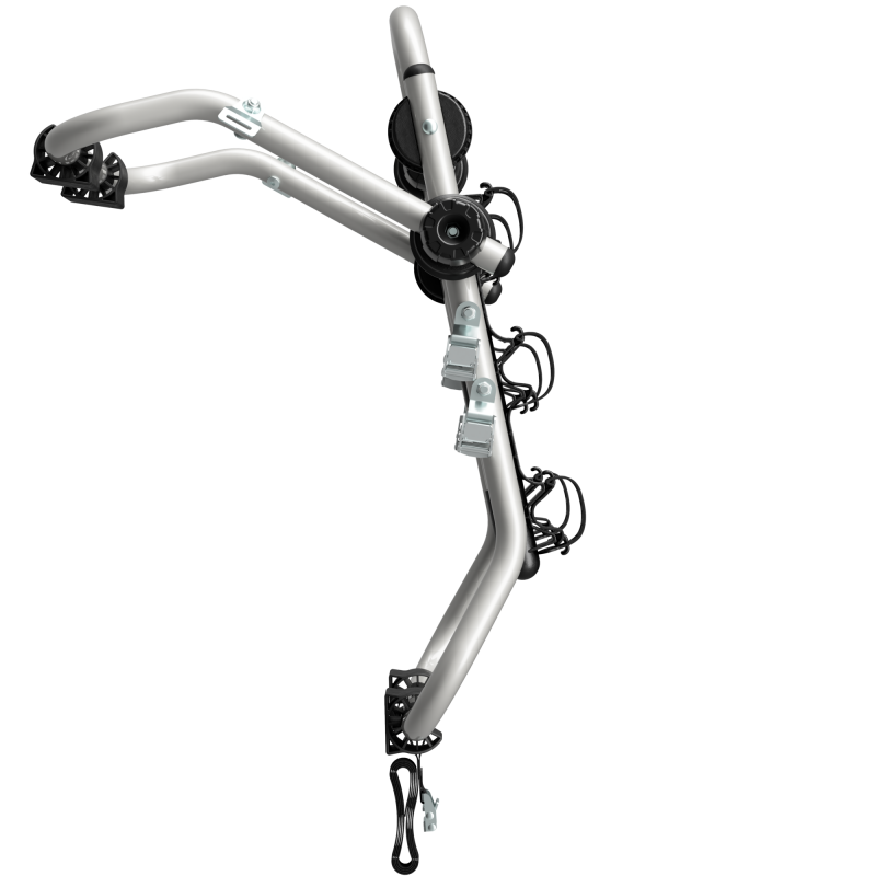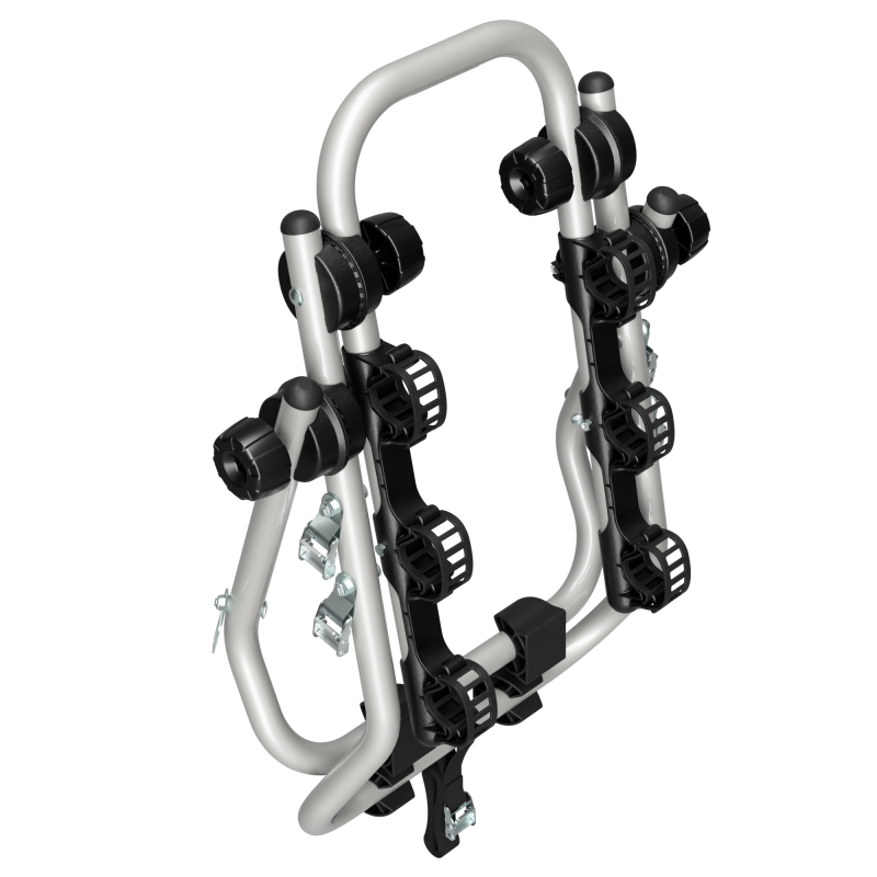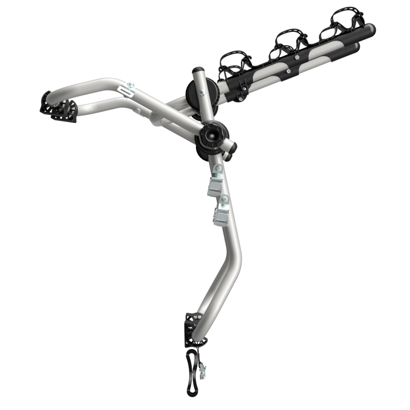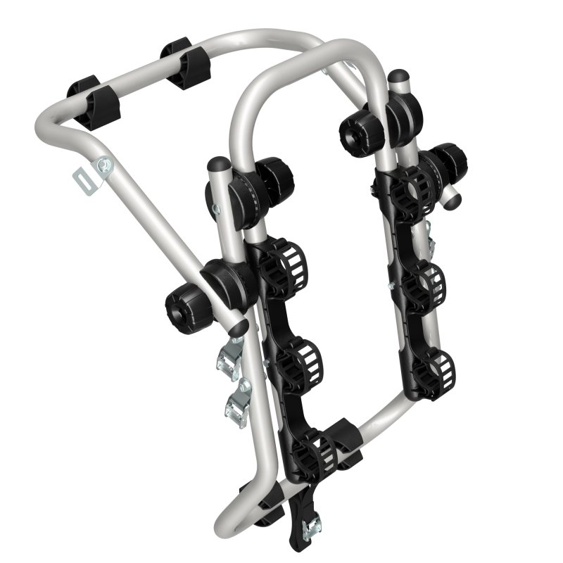 The rear bike carrier Venezia Alu has a schock absorbing frame support. It's fully assembled and folds flat for an easy storage.