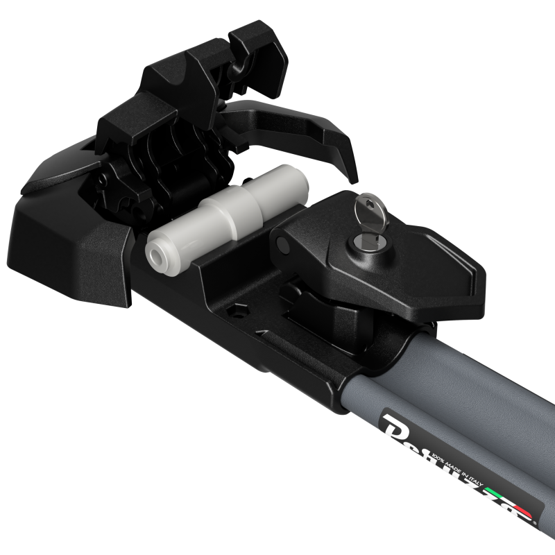 The universal roof bike carrier with fork fixing Pure Instinct fits with any fork, suitable with disk brakes and secure-locks bike to carrier and carrier to roof bars included. Adaptor for thru axle d.9 mm is included.