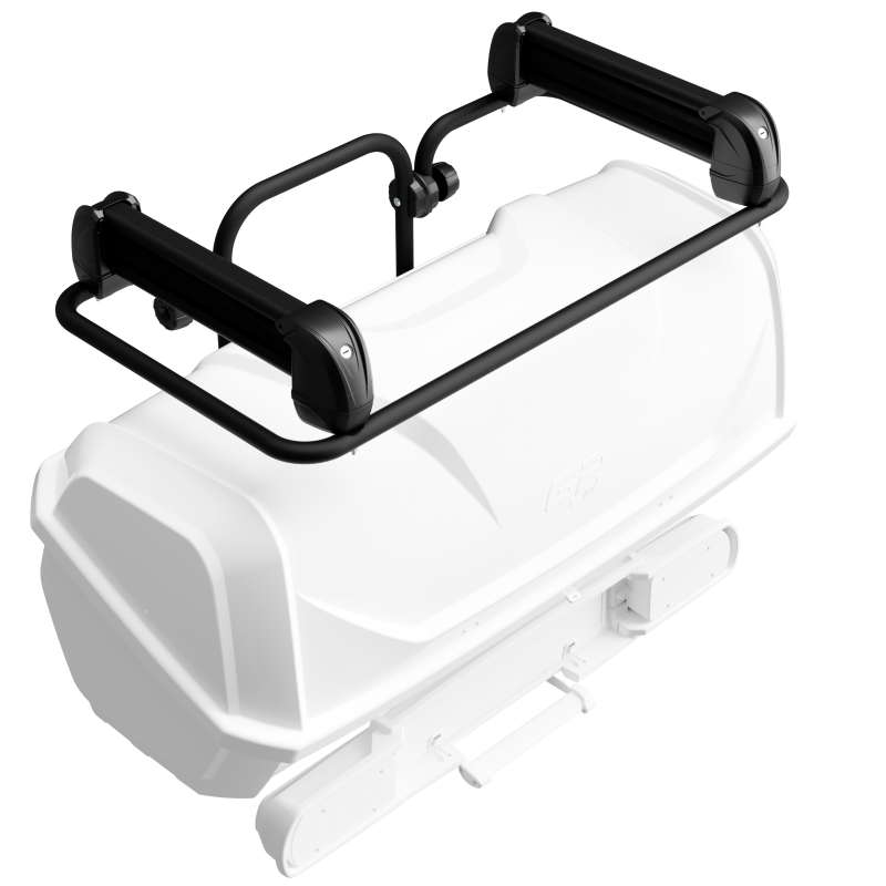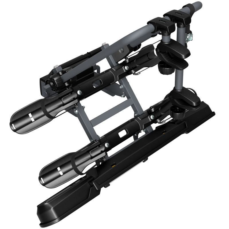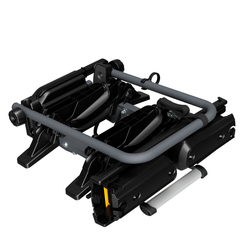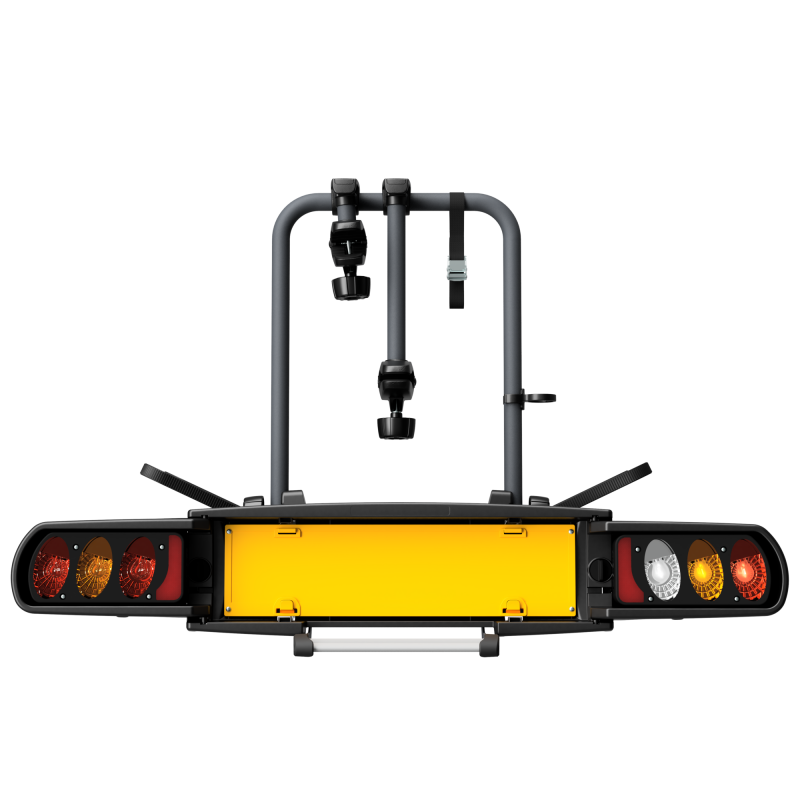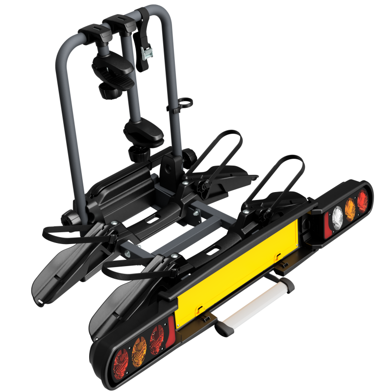 Compact design, folds up to save space, the universal towball bike carrier Pure Instinct has wider tracks to accomodate e-bikes. Equipped with all grab arms for bikes, available as accessory an easy loading ramp, art 885