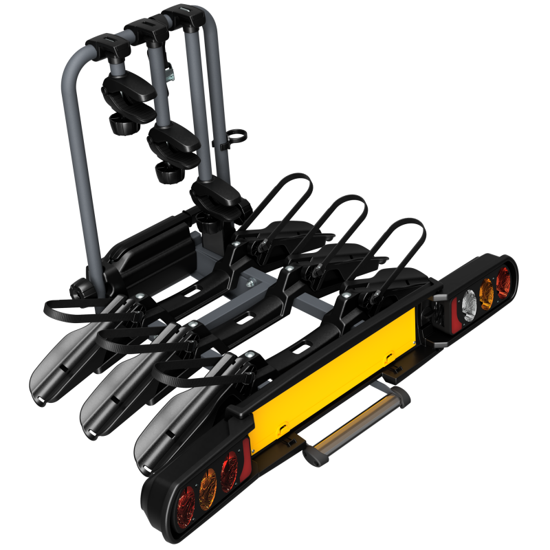Compact design, folds up to save space, the universal towball bike carrier Pure Instinct has wider tracks. Equipped with all grab arms for bikes, available as accessory an easy loading ramp, art 885