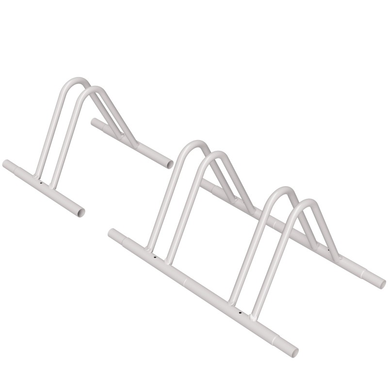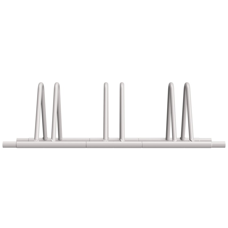 Joint bike rack to park one bike, it's possible to hook further pieces to obtain a long bike park. It has two holes at the bottom to ground fixing.
