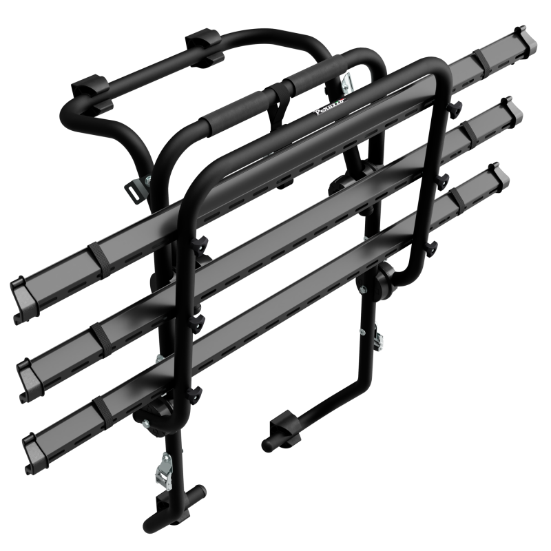 Il portabici posteriore in acciaio Padova 3 bici permette di portare bici fino a 28", è il più economico tra i prodotti con binario ed è completamente regolabile.