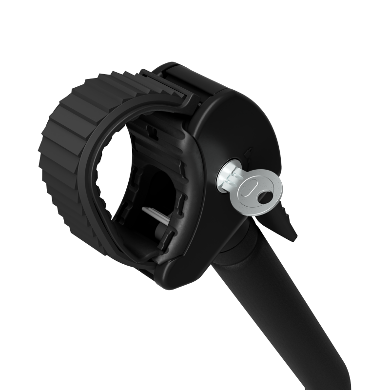 Nuovo braccetto con cinghia a crick, per un fissaggio semplice e veloce, con chiusura a chiave.